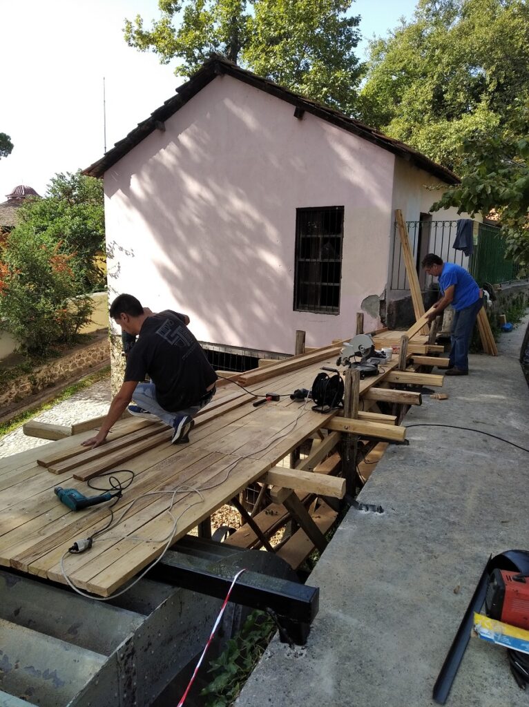 Συνεργείο από εργαζόμενους της Δημοτικής Κοινωφελούς Επιχείρησης του Δήμου Έδεσσας (ΔΗΚΕΔΕ) πραγματοποίησε εργασίες αποκατάστασης της μεγάλης ρόδας, ενώ είχαν προηγηθεί αποκαταστάσεις φθορών στη στέγη του νερόμυλου.