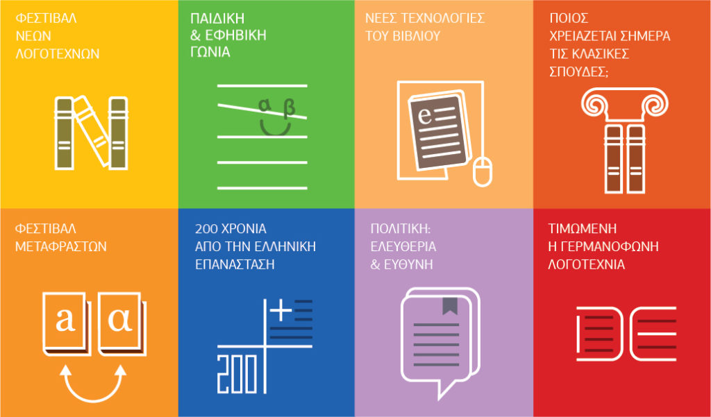 Η ΔΕΒΘ θα φιλοξενήσει ακόμη το καθιερωμένο πρόγραμμα εκδηλώσεων που περιλαμβάνει το Φεστιβάλ Νέων Λογοτεχνών, το Φεστιβάλ Μετάφρασης, την Ημερίδα των Βιβλιοθηκονόμων καθώς και παρουσιάσεις νέων εκδόσεων, συζητήσεις με συγγραφείς, θεματικές εκθέσεις και προβολές.