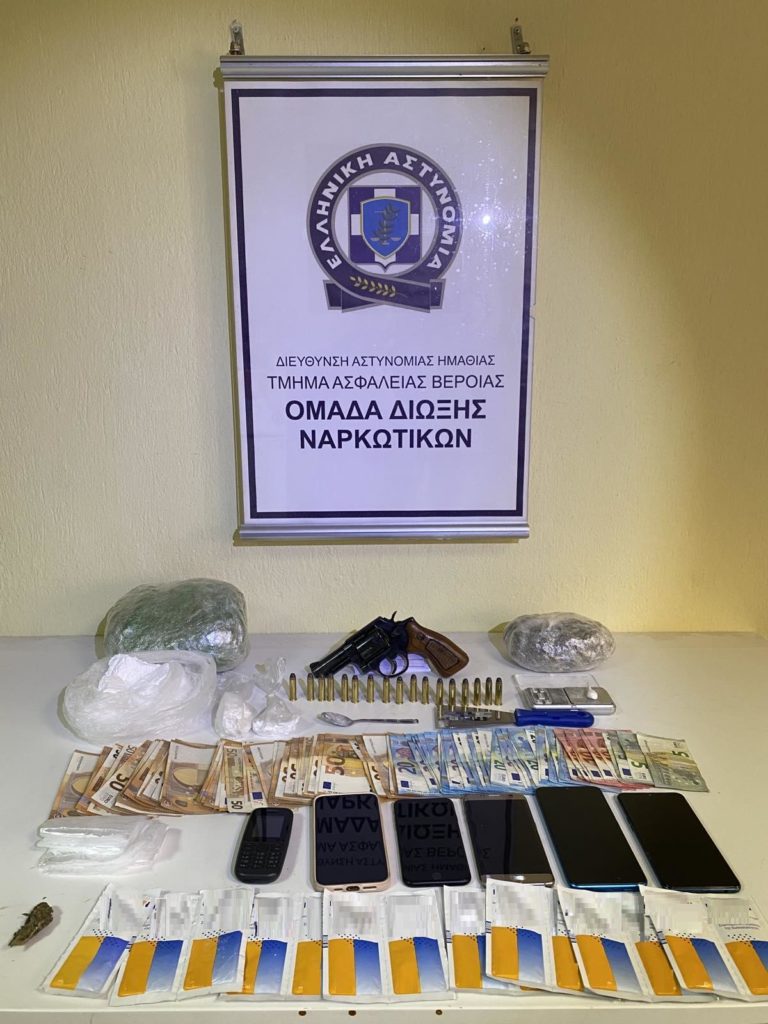 Συνελήφθησαν χθες (6 Απριλίου 2021) το απόγευμα σε περιοχή της Θεσσαλονίκης από αστυνομικούς της Ομάδας Δίωξης Ναρκωτικών του Τμήματος Ασφάλειας Βέροιας, ένας ημεδαπός άνδρας και μία ημεδαπή γυναίκα για διακίνηση ναρκωτικών ουσιών και παράβαση της νομοθεσίας περί όπλων.