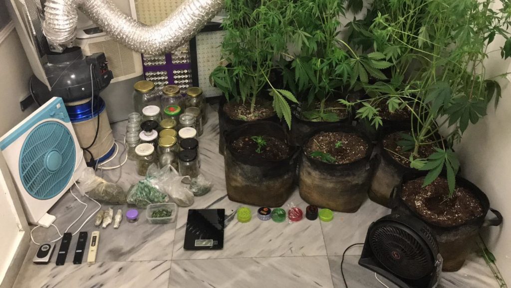- 10 δενδρύλλια κάνναβης ύψους έως 1,3 μέτρων, που καλλιεργούσαν σε ειδικά διαμορφωμένο χώρο της οικίας με τη μέθοδο της υδροπονίας,