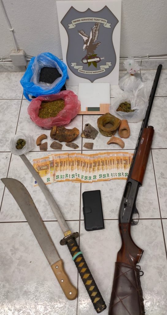 Συνελήφθη χθες (18 Νοεμβρίου 2021) το μεσημέρι σε περιοχή της Χαλκιδικής από αστυνομικούς της Ομάδας Δίωξης Ναρκωτικών του Τμήματος Ασφάλειας Πολυγύρου, ημεδαπός άνδρας, για καλλιέργεια, κατοχή και διακίνηση κάνναβης, παράνομη οπλοκατοχή και αρχαιοκαπηλία.