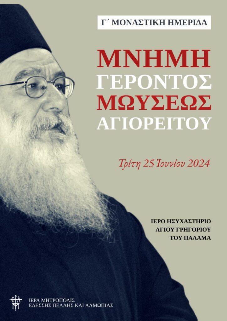 Με μεγάλη συμμετοχή Αρχιερέων, Καθηγουμένων, μοναστών και μοναζουσών από όλη την Ελλάδα ολοκληρώθηκε την Τρίτη 25 Ιουνίου 2024 η 3η Μοναστική Ημερίδα της Ιεράς Μητροπόλεως Εδέσσης, Πέλλης και Αλμωπίας με θέμα: «Μνήμη Γέροντος Μωυσέως Αγιορείτου».