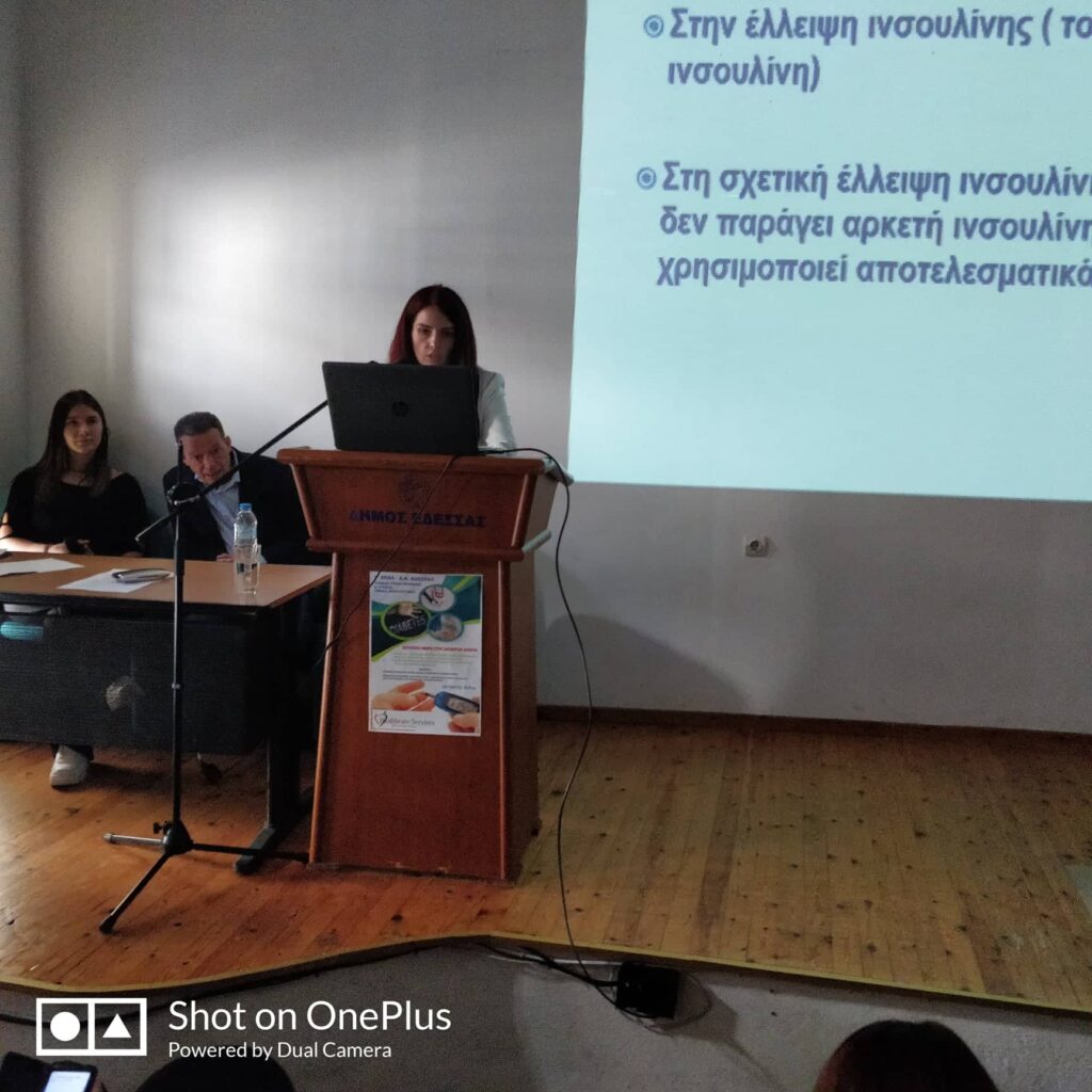 Την Δευτέρα 14 Νοεμβρίου 2022, διοργανώθηκε εκδήλωση-ομιλία ενημέρωσης για τον Σακχαρώδη Διαβήτη στο Πολιτιστικό Κέντρο Του Δήμου Έδεσσας με ομιλητές ήταν τον κ. Φελέκη Θεόδωρο, Ειδικό Παθολόγο-Διαβητολόγο και τη κ. Αρβανίτη Αικατερίνη, Διαιτολόγο-Διατροφολόγο οι οποίοι ανέλυσαν διεξοδικά το πρόβλημα του Διαβήτη και την σημασία της πρόληψης του.  Στην εκδήλωση παραβρέθηκαν  ο Δήμαρχος Έδεσσας,  ο Αστυνομικός Διευθυντής Αστυνομικής Διεύθυνσης Πέλλας, εκπρόσωπος του Διοικητή της Πυροσβεστικής του Νομού, ο Αντιδήμαρχος Υγείας, ο Συντονιστής παιδαγωγικού έργου της Περιφέρειάς μας , ο Προϊστάμενος της Διεύθυνσης Δευτεροβάθμιας Εκπαίδευσης Πέλλας, Διευθυντές Σχολείων, ο Σύλλογος Γονέων και Κηδεμόνων του ΕΠΑΛ Έδεσσας, εκπρόσωποι φορέων,  Εκπαιδευτικοί, μαθητές και  συμπολίτες μας.