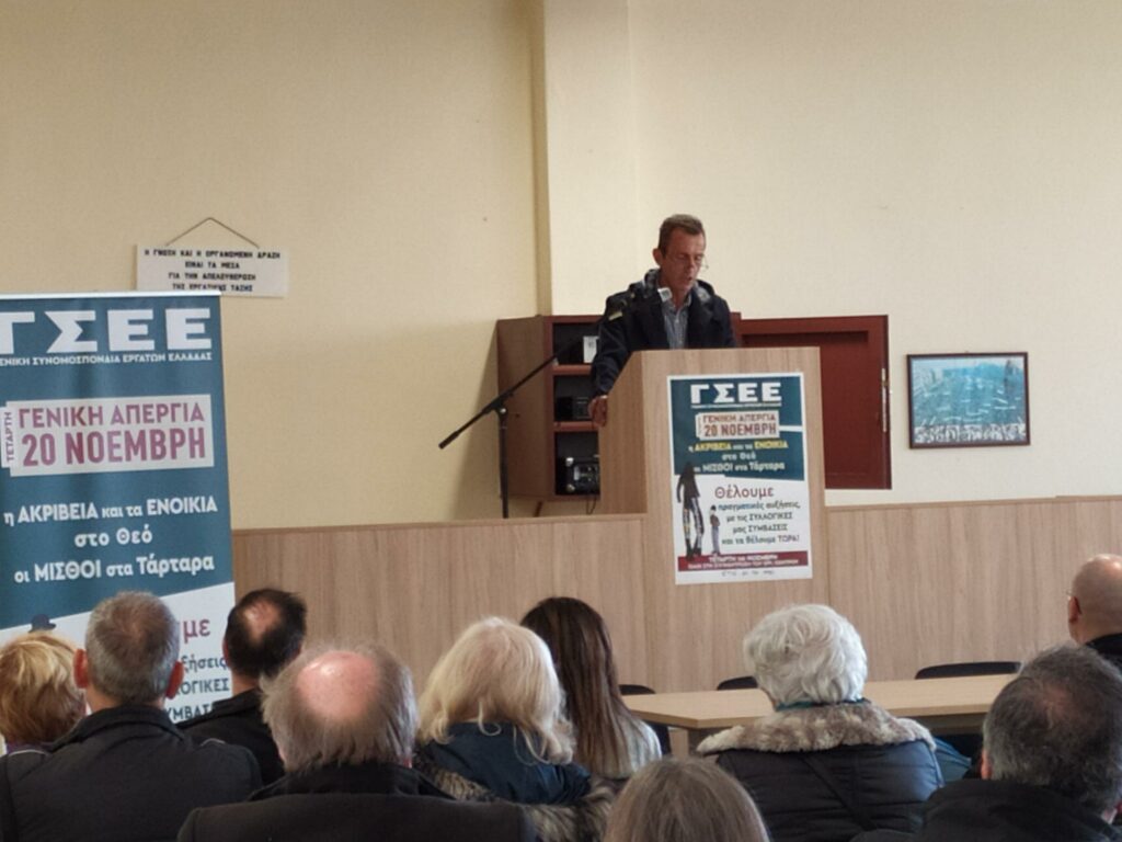 Η κυβέρνηση λέει ότι περιμένει πορίσματα των κοινωνικών εταίρων για τις συλλογικές συμβάσεις, στην ουσία η κυβέρνηση δεν θέλει να ενσωματώσει την κοινοτική οδηγία που προβλέπει ποσοστό κάλυψης εργαζομένων από συλλογικές συμβάσεις εργασίας στο 80% ενώ εμείς βρισκόμαστε στο 30% .