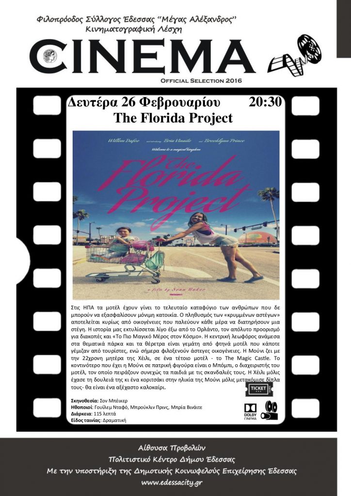 Ο Φ.Σ.Ε. «ΜΕΓΑΣ ΑΛΕΞΑΝΔΡΟΣ» (Κινηματογραφική Λέσχη), με την υποστήριξη της ΔΗ.ΚΕ.ΔΕ., την Δευτέρα 26 Φεβρουαρίου 2018 στις 8:30 μ.μ., στο Πολιτιστικό Κέντρο του Δήμου Έδεσσας (αίθουσα προβολών) θα προβάλλει την ταινία: