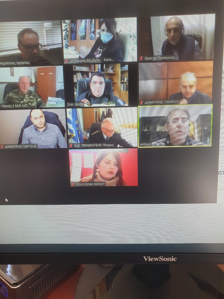 Στη συνέχεια η Δήμαρχος Σκύδρας συμμετείχε σε τηλεδιάσκεψη που συγκλήθηκε από τον Αντιπεριφερειάρχη Πέλλας Δάνη Τζαμτζή κατά την οποία η Δήμαρχος αναφέρθηκε στην ετοιμότητα του Δήμου Σκύδρας και παράλληλα επεσήμανε περιπτώσεις στις οποίες πρέπει να δοθεί ιδιαίτερη βαρύτητα, όπως είναι οι γέφυρες, οι κόμβοι και το γενικότερο δίκτυο του Νομού.