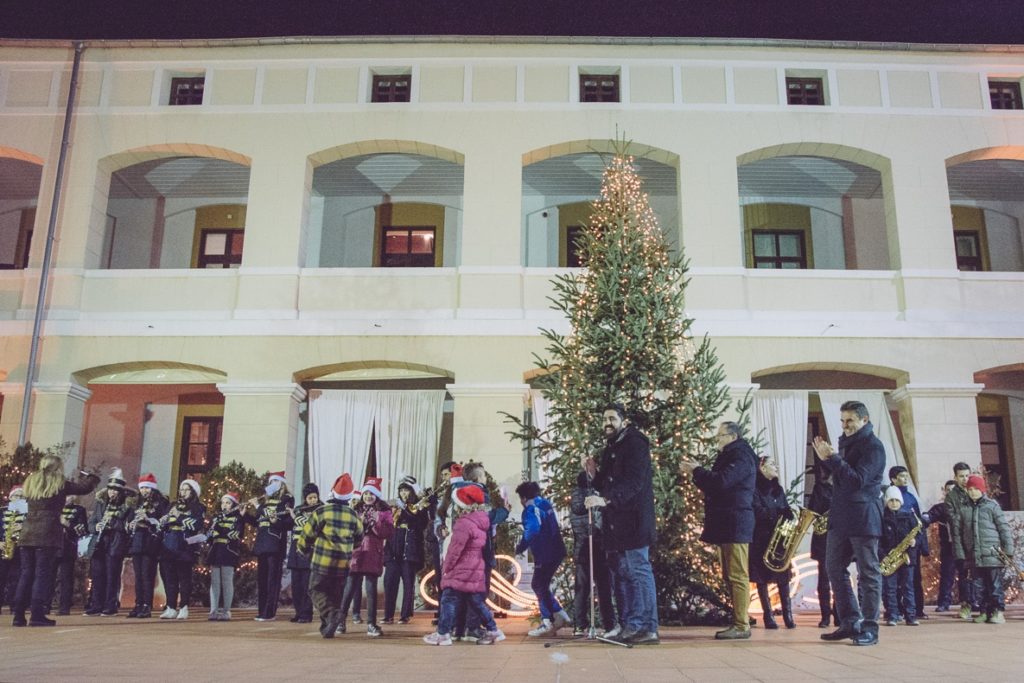 Τα κλιμάκια των δυο Φιλαρμονικών πλημμύρισαν με χαρμόσυνους ήχους όλη τη Μονή Λαζαριστών και η γιορτή κορυφώθηκε με τη φωταγώγηση του εντυπωσιακού χριστουγεννιάτικου δέντρου.