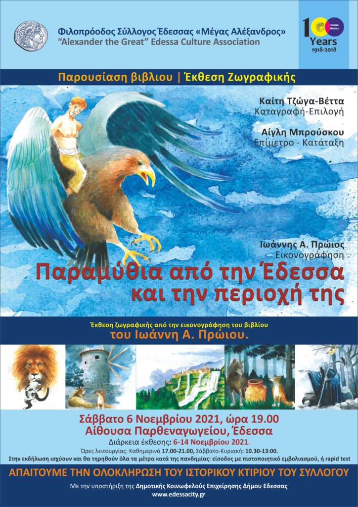 Το βιβλίο «Παραμύθια από την Έδεσσα και την περιοχή της» ( εκδ. Φ.Σ.Ε.”Μ. Αλέξανδρος” – Δημ. Κοινωφελής Επιχείρηση Δ. Έδεσσας, Έδεσσα 2021), εκτύπωση: Βαγουρδής, θα παρουσιαστεί το Σάββατο 6 Νοεμβρίου 2021 και ώρα 19:00, στο Παρθεναγωγείο, στην Έδεσσα.