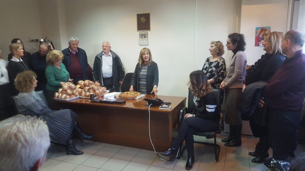 Η Αν. Αντιπεριφερειάρχης Πέλλας Αθηνά Αθανασιάδου – Αηδονά είχε την ευκαιρία να συζητήσει από κοντά με τα στελέχη των υπηρεσιών της Διεύθυνσης Αγροτικής Οικονομίας και Κτηνιατρικής και της Υποδιεύθυνσης Οικονομικού-Ανθρωπίνων Πόρων κατά τη διάρκεια της κοπής βασιλόπιτας των δύο υπηρεσιών.