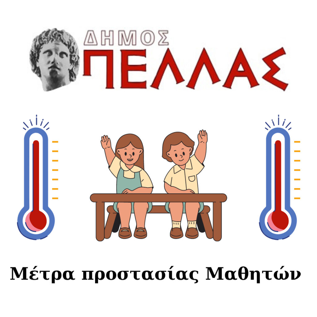 Ο Δήμος Πέλλας σας ενημερώνει ότι για αύριο Πέμπτη 13 Ιουνίου, λόγω καύσωνα, το ωράριο λειτουργίας του συνόλου των σχολικών μονάδων Πρωτοβάθμιας Εκπαίδευσης διαμορφώνεται ως εξής : από τις 08:15 π.μ έως 11:30 π.μ