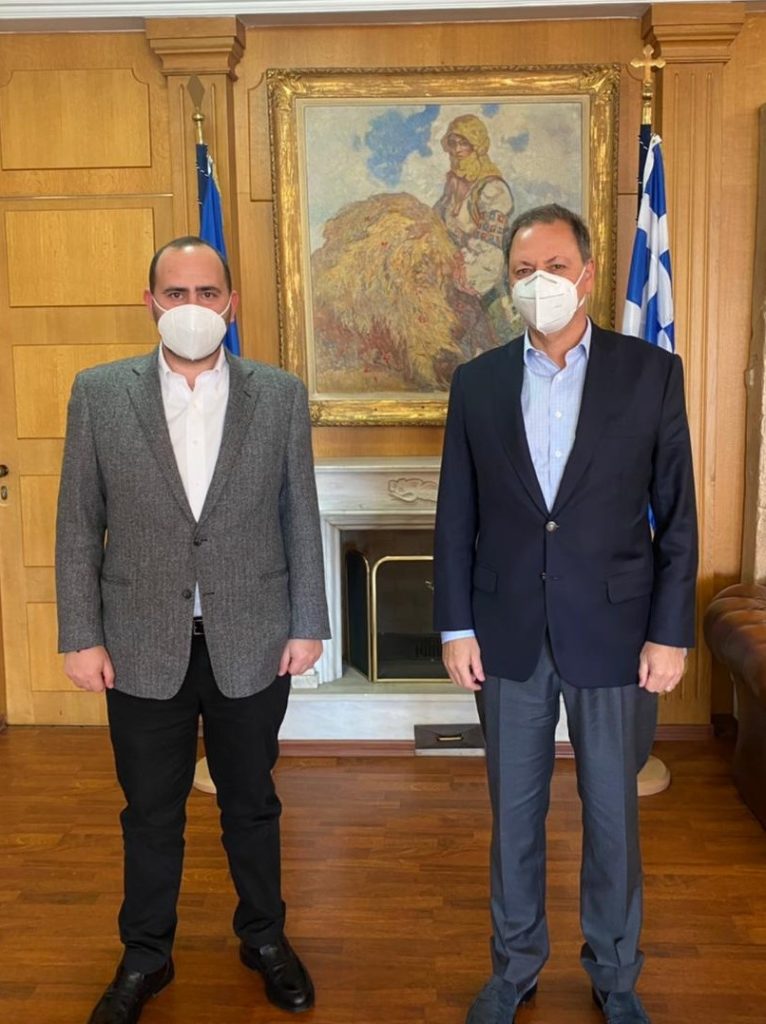 Ο Λάκης Βασιλειάδης συναντήθηκε επίσης και με τον νέο Υφυπουργό Αγροτικής Ανάπτυξης & Τροφίμων κ. Ιωάννη Οικονόμου, με το οποίο συζήτησαν το μέλλον της αγροτικής οικονομίας της χώρας, την αξιοποίηση ευρωπαϊκών πόρων, τη νέα ΚΑΠ, νέα προγράμματα σχεδίων βελτίωσης, νέα προγράμματα νέων αγροτών κ.α.
