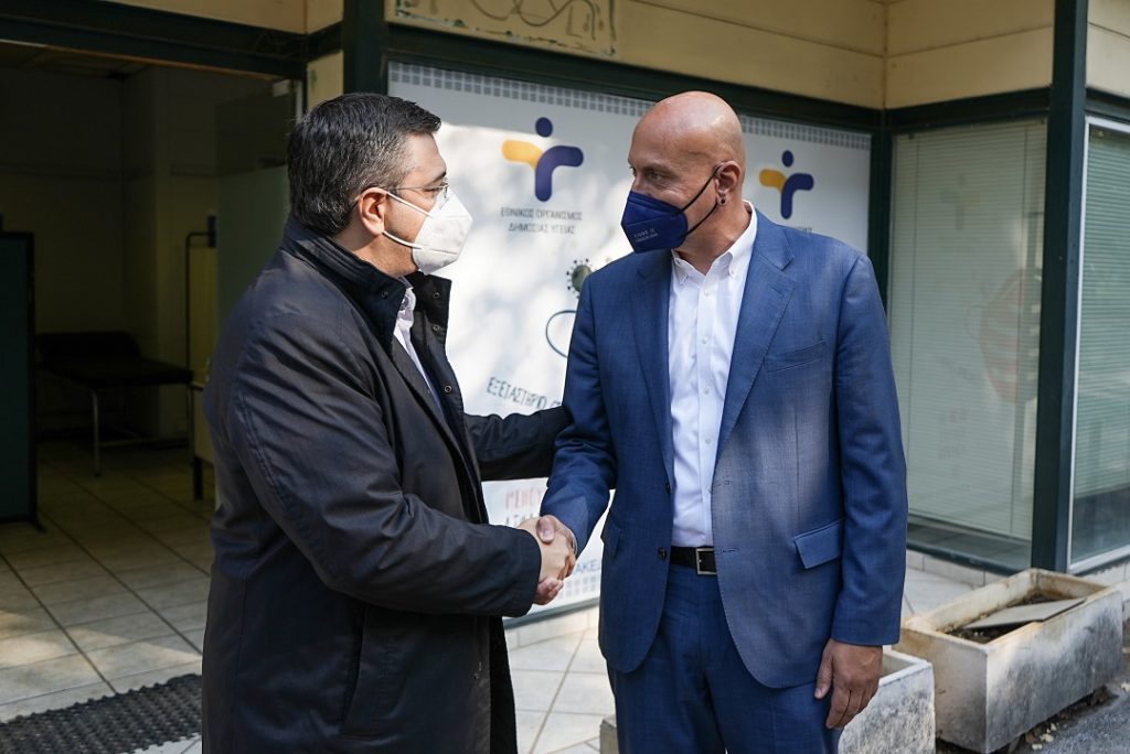 Οι δυο άνδρες επισκέφτηκαν το κέντρο διενέργειας ελέγχων για κορονοϊό του ΕΟΔΥ, που εδρεύει στη Βίλα Αλλατίνι και συζήτησαν για την προοπτική να δημιουργηθούν ανάλογα κέντρα σε κτίρια υπηρεσιών της Περιφέρειας σε άλλες Περιφερειακές Ενότητες εκτός Θεσσαλονίκης.