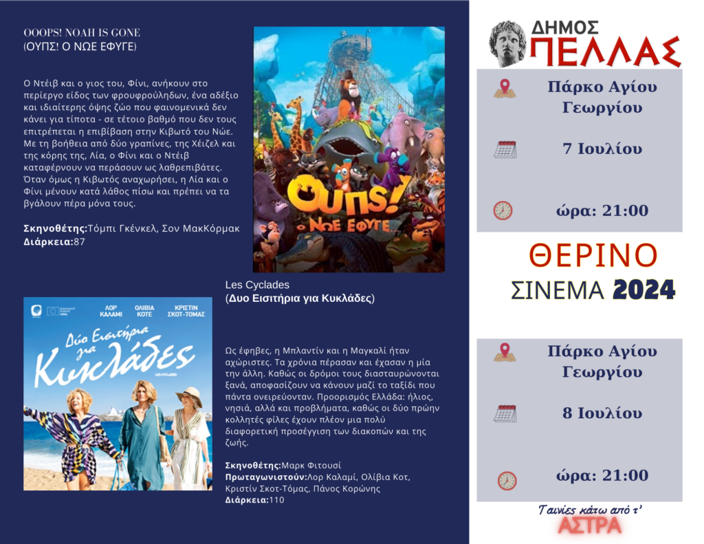 Θερινό Σινεμά 2024 στο Δήμο Πέλλας…