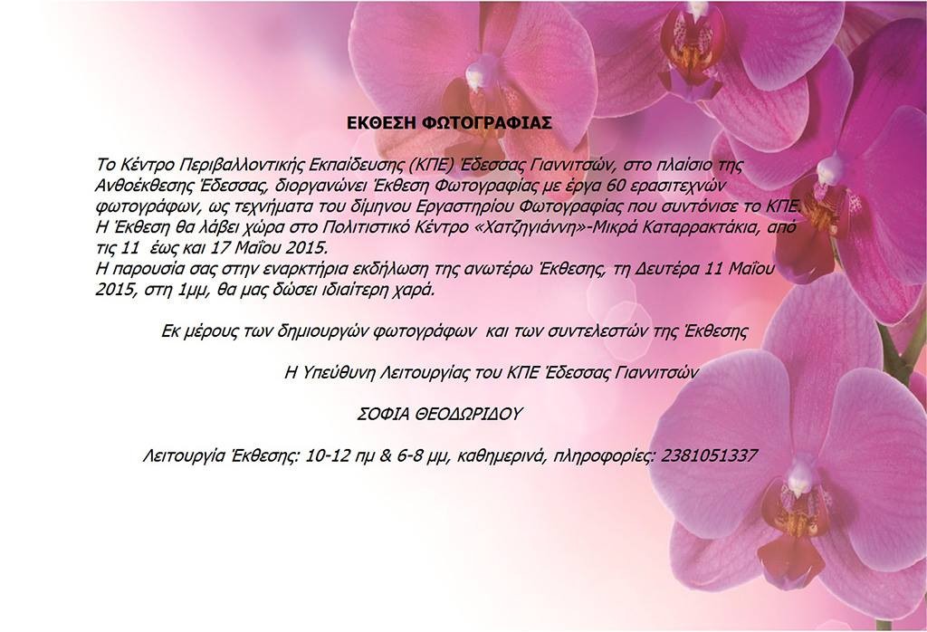 Έκθεση Φωτογραφίας αύριο στο Πολιτιστικό Κέντρο Χατζηγιάννη στα Μικρά Καταρρακτάκια