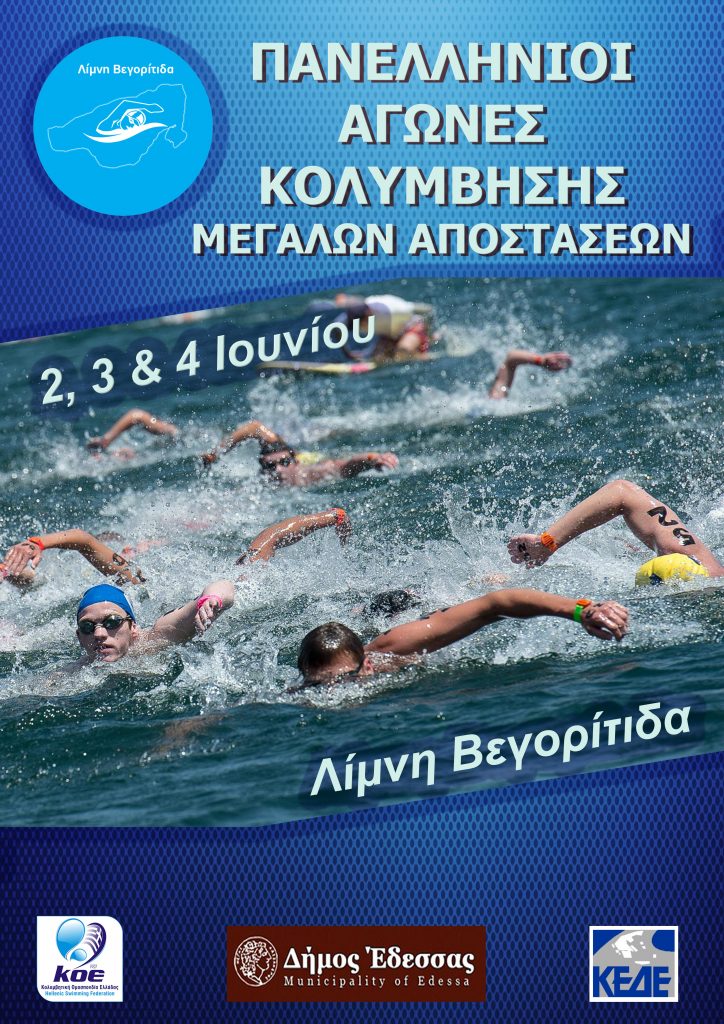 Σήμερα Παρασκευή, 2 Ιουνίου 2017, ξεκινούν οι Πανελλήνιοι Κολυμβητικοί Αγώνες Μεγάλων Αποστάσεων στη Λίμνη Βεγορίτιδα, σε συνδιοργάνωση της Κολυμβητικής Ομοσπονδίας Ελλάδας με το Δήμο Έδεσσας.