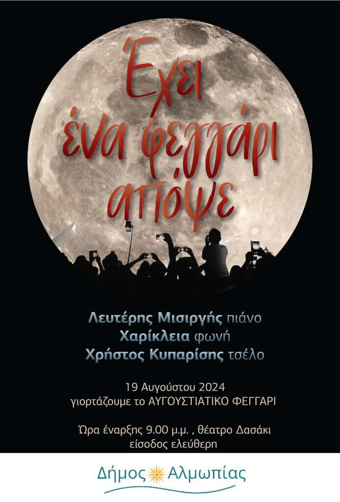 Ο Δήμος Αλμωπίας οργανώνει μία ιδιαίτερη συναυλία με τραγούδια που έχουμε αγαπήσει αλλά κι έχουμε συνδέσει με το ονειρικό σκηνικό της πανσέληνου του Αυγούστου.