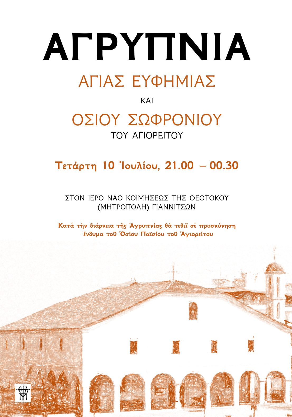 ΑΓΡΥΠΝΙΑ ΑΓΙΑΣ ΕΥΦΗΜΙΑΣ ΚΑΙ ΟΣΙΟΥ ΣΩΦΡΟΝΙΟΥ ΑΓΙΟΡΕΙΤΟΥ ΣΤΑ ΓΙΑΝΝΙΤΣΑ