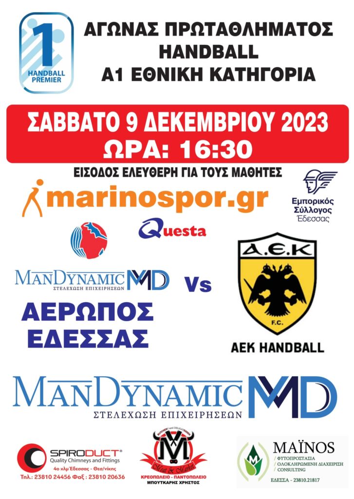 ΑΕΡΩΠΟΣ ManDynamic ΕΔΕΣΣΑΣ – ΑΕΚ ( ΖΩΝΤΑΝΗ ΜΕΤΑΔΟΣΗ) 16:30