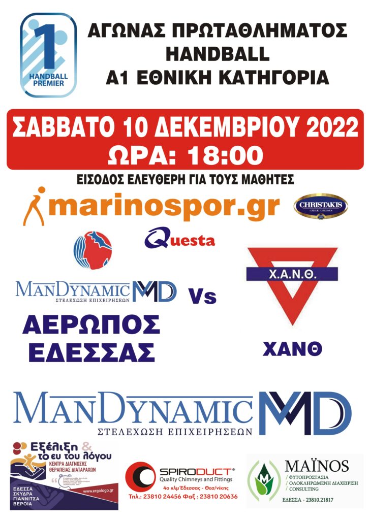 ΑΕΡΩΠΟΣ ManDynamic ΕΔΕΣΣΑΣ – Χ.Α.Ν.Θ – live μετάδοση