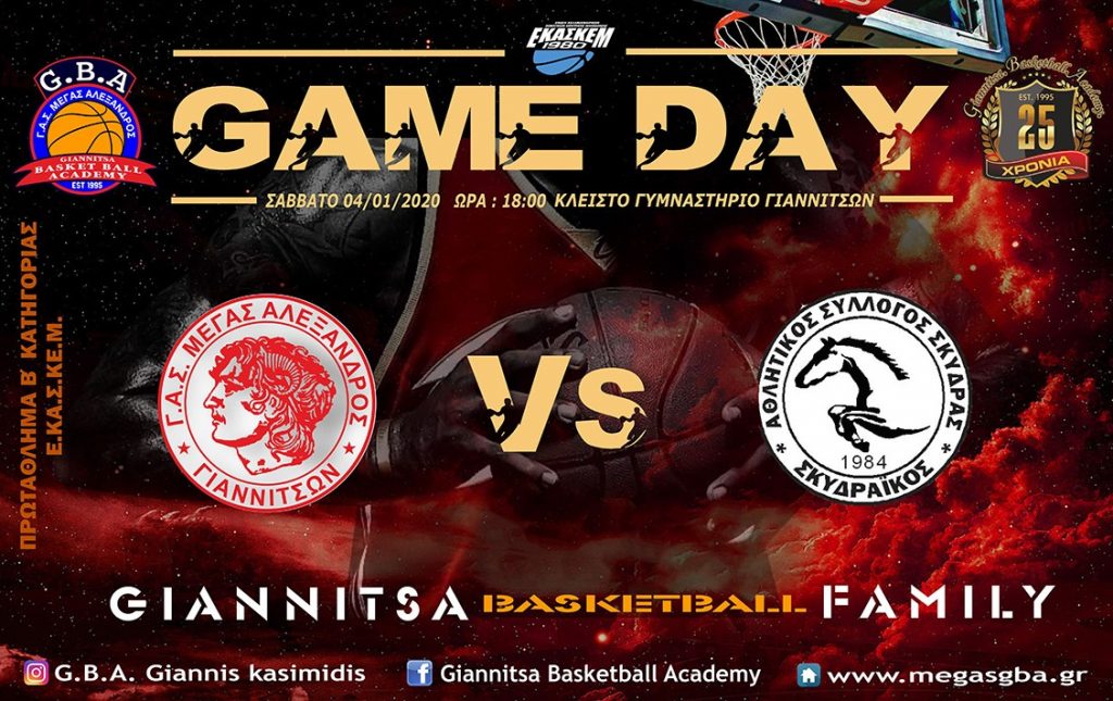 Το Ανδρικό τμήμα συνεχίζει τις αγωνιστικές δράσεις του συλλόγου αφού το απόγευμα της ίδιας μέρας (Σάββατο 04/01/2020) και ώρα 18:00 θα υποδεχθεί την ομάδα του «Σκυδραϊκού» στο κλειστό γυμναστήριο των Γιαννιτσών για το πρωτάθλημα της Β’ κατηγορίας της Ε.ΚΑ.Σ.ΚΕ.Μ .