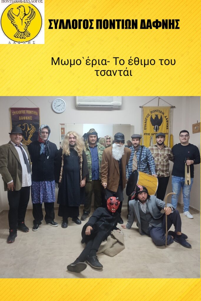 Ο Ποντιακός Σύλλογος Δάφνης Σκύδρας στο πλαίσιο της διάσωσης, διατήρησης κι ανάδειξης της πολιτιστικής μας κληρονομιάς και με αφορμή τον ερχομό της νέας χρονιάς διοργανώνει την αναπαράσταση – αναβίωση του εθίμου του «τσαντάι».