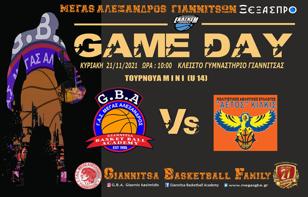 Την Κυριακή 21/11/2021 και ώρα 10:00  το τμήμα «Μίνι» του συλλόγου  θα αγωνιστεί με την ομάδα του «Αετού» Κιλκίς  στο κλειστό γυμναστήριο των Γιαννιτσών.