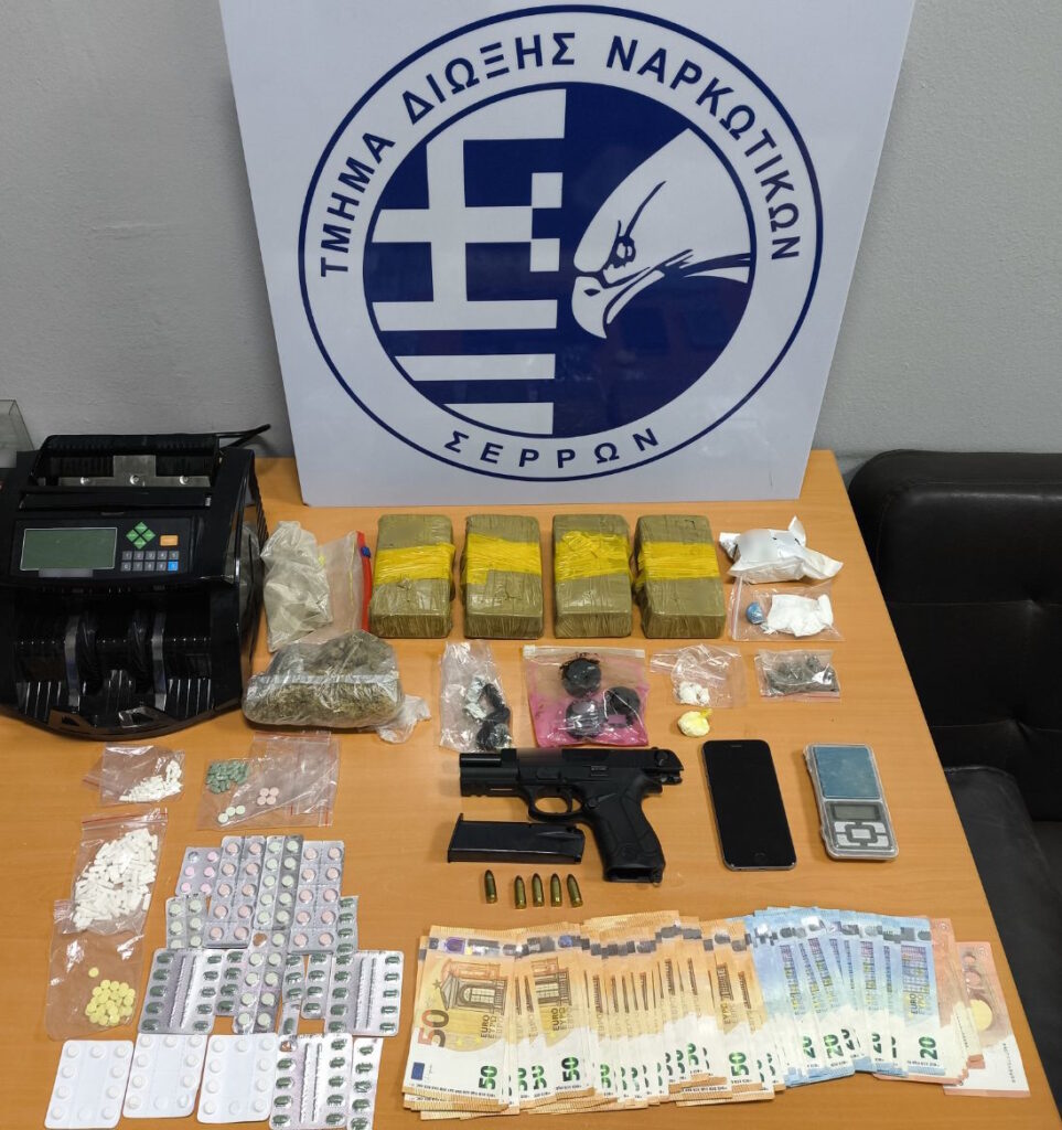 Κατασχέθηκαν περισσότερα από 2,3 κιλά ηρωίνης, ένα πιστόλι, καθώς και ποσότητες κοκαΐνης και κάνναβης