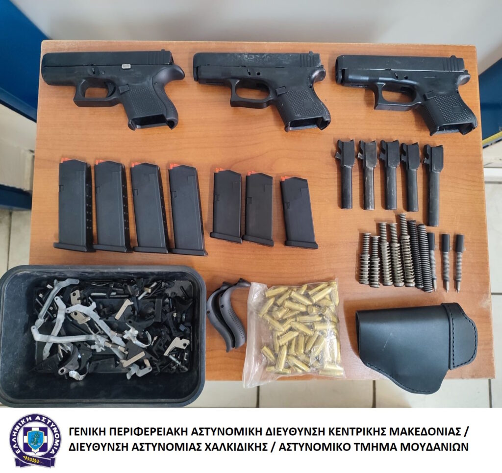 Σε έρευνες που πραγματοποιήθηκαν σε οικίες που χρησιμοποιούσε βρέθηκαν και κατασχέθηκαν 10 πιστόλια, φυσίγγια και εξαρτήματα όπλων