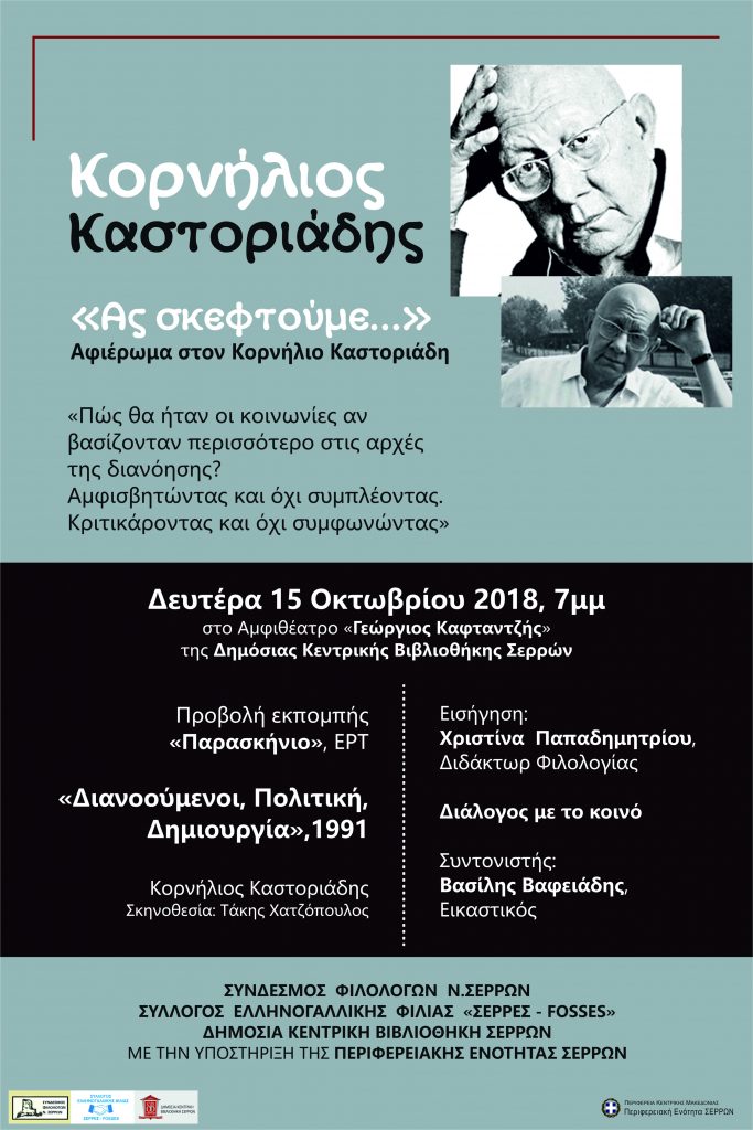 Αφιέρωμα στον Κορνήλιο Καστοριάδη με την υποστήριξη της Περιφερειακής Ενότητας Σερρών