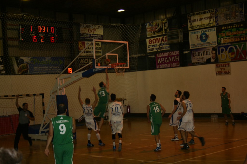 Ο Πανεδεσσαϊκός δεν ξεκίνησε καλά τον αγώνα κυρίως στον επιθετικό τομέα, όπου στηρίχτηκε σε προσπάθειες του μαχητικού Θεοδώρου ο οποίος μετουσίωσε σε καλάθι ότι επιθετικό ριμπάουντ πήρε για την ομάδα του με το πρώτο δεκάλεπτο να λήγει 15-15. Στο δεύτερο δεκάλεπτο ο Πανεδεδεσσαϊκός προηγήθηκε με +5(23-18) στο 24ο λεπτό σημείο στο οποίο αντέδρασε ο Κορινός και με την είδοσο του Ντινόπουλου(11 π., 3/3 τρίπ.) που δεν μπορούσε να αντιμετωπιστεί και προηγήθηκε με 27-28 στο ημίχρονο. Οι παίκτες του Πανεδεσσαϊκού μπήκαν πιο «ψυχωμένοι» στο δεύτερο ημίχρονο και στηριζόμενοι στην άμυνα τους κατάφεραν να προηγηθούν με διψήφιο αριθμό πόντων στα μέσα του τρίτου δεκαλέπτου που τη διατήρησαν προηγούμενοι με 52-39. Ο Σταμπουλής με την ευστοχία του από τη γραμμή των 6,75 ήταν καθοριστικός σ’ αυτό το σημείο για την ομάδα του Γιώργου Χασάπη. Τσάμης, Αρβανιτάκης και Χατζηχαρίσης αφυπνίστηκαν και ανέλαβαν να «τελειώσουν» το παιχνίδι για τη γηπεδούχο ομάδα καθώς με την εμπειρία τους πέτυχαν κρίσιμα καλάθια, κρατώντας τους φιλοξενούνενους μακριά από το σκορ, επικρατώντας τελικά με 67-55. Προφυλάχθηκε για ακόμη έναν αγώνα ο Δημητρόπουλος λόγω του τραυματισμού του.