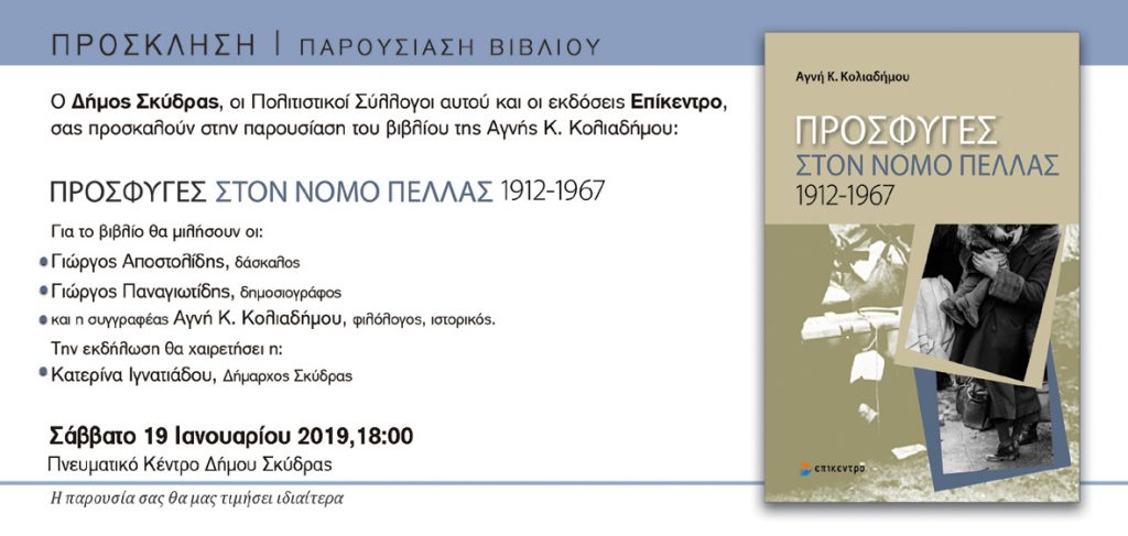 Βιβλιοπαρουσίαση “Πρόσφυγες στο νομό Πέλλας 1912-1967”