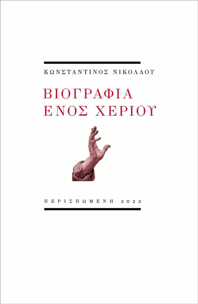 O Κωνσταντίνου Νικολάου στην πρώτη του ποιητική συλλογή με τίτλο «Βιογραφία ενός χεριού» παραθέτει τριάντα εννέα αντισυμβατικά ποιήματα που συνδιαλέγονται γόνιμα με την ιστορία, την τέχνη, τη λογοτεχνία και τις προκλήσεις της σύγχρονης καθημερινότητας, χωρίς ωστόσο να πέφτουν στην παγίδα της σπουδαιοφάνειας. Με ανανεωτική διάθεση, ιδιαιτέρως κριτική προσέγγιση αλλά και χιούμορ, επανεξετάζει γνωστά θέματα και πρόσωπα δοκιμάζοντας ασυνήθιστα πρίσματα με αποτέλεσμα την απρόσμενη εξέλιξη στην τροπή των ποιημάτων και κατά συνέπεια στην αίσθηση που αποπνέει η ανάγνωσή τους.