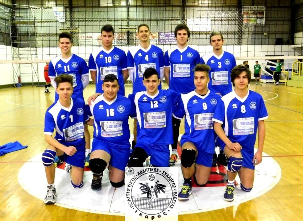 Την Κυριακή 18-12-2016 στις 4 μμ στο κλειστό γήπεδο του ΔΑΚ Έδεσσας, πραγματοποιήθηκε το τοπικό ντέρμπι βόλεϊ των Εδεσσαικών ομάδων στο Εφηβικό Πρωτάθλημα ΕΔΕΣΣΑΙΚΗ Γ.Ε.-ΙΚΑΡΟΣ ΕΔΕΣΣΑΣ. Οι κερκίδες γεμάτες με φιλάθλους και των δύο ομάδων και ο αγώνας πρόσφερε ένα όμορφο αθλητικό θέαμα.