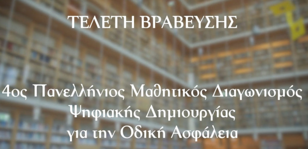 Σε ελπιδοφόρο και αισιόδοξο κλίμα με πρωταγωνιστές τους μαθητές, που για μια ακόμα φορά μας δείχνουν το δρόμο, πραγματοποιήθηκε διαδικτυακά η τελετή βράβευσης του 4ου Πανελλήνιου Μαθητικού Διαγωνισμού Ψηφιακής Δημιουργίας για την Οδική Ασφάλεια που συνδιοργανώνεται. Σκοπός του διαγωνισμού είναι η ευαισθητοποίηση και η ενεργοποίησή των μαθητών και μαθητριών στο ζήτημα της ασφαλούς μετακίνησής τους μέσω της δημιουργίας πρωτότυπων ψηφιακών έργων (Ταινία, Βίντεο Σποτ, εφαρμογής με αξιοποίηση εργαλείων Web2.0). Βασικό θέμα του 4ου Διαγωνισμού ήταν η προώθηση των αιτημάτων της διεθνούς καμπάνιας THIS IS MY STREET – Ο ΔΙΚΟΣ ΜΟΥ ΔΡΟΜΟΣ που το Ινστιτούτο συντονίζει σε Ελλάδα και Κύπρο ως μέλος της Διεθνούς Ομοσπονδίας Αυτοκινήτου (FIA).