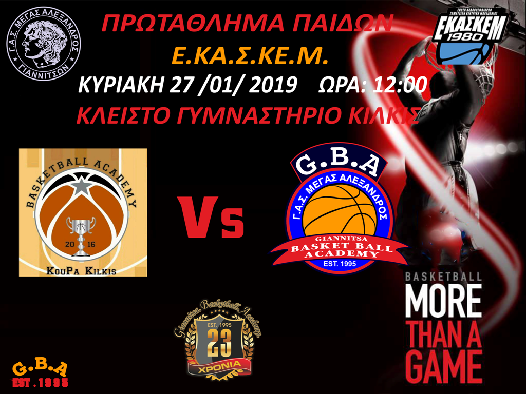 Το Ανδρικό τμήμα του Συλλόγου ανοίγει την αυλαία των αγώνων το Σάββατο 26/01/2019 και ώρα 18:00 στο κλειστό γυμναστήριο της Έδεσσας όπου αγωνίζεται με την ομώνυμη ομάδα της πόλης των «Εδεσσαικό» για το πρωτάθλημα Α’ κατηγορίας της Ε.ΚΑ.Σ.ΚΕ.Μ. Στην συνέχεια το παιδικό τμήμα συνεχίζει τις υποχρεώσεις του συλλόγου την Κυριακή 27/01/2019 και ώρα 12:00 και θα αγωνιστεί στο κλειστό γυμναστήριο του Κιλκίς με την ομάδα της «Κουπα». Την σκυτάλη της αγωνιστικής θα πάρουν οι Βενιαμίν του Συλλόγου που συμμετέχουν στο τουρνουά προμίνι που διοργανώνει η Ε.ΚΑ.Σ.ΚΕΜ. με το παιχνίδι που θα διεξαχθεί στο κλειστό γυμναστήριο Γιαννιτσών «Έλλη Μυστακίδου» την Κυριακή 27/01/2019 και ώρα 14:00 με αντίπαλο την αντίστοιχη ηλικιακά ομάδα του «Εδεσσαίκου».