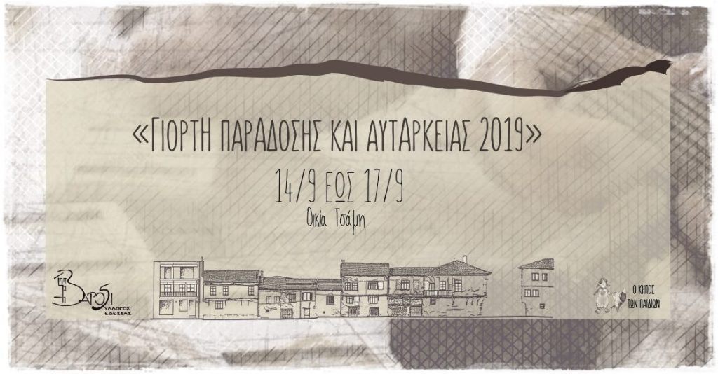 Ο Πολιτιστικός Σύλλογος «ΒΑΡΟΣΙ» Έδεσσας σε συνεργασία με το πρακτικό εργαστήρι «Ο ΚΗΠΟΣ ΤΩΝ ΠΑΙΔΙΩΝ», διοργανώνουν «Οικογιορτή», από 14/9 έως 17/9, στην οικία Τσάμη στο Βαρόσι.
