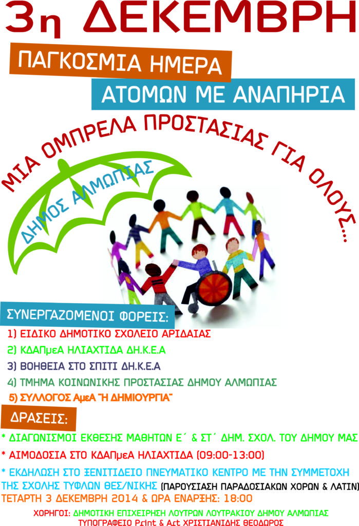 Όλοι από την πλευρά μας να συμβάλλουμε στην αλλαγή νοοτροπίας και στην προσέγγιση των ατόμων με αναπηρία μέσα από ενημερωτικές και εκπαιδευτικές εκστρατείες.
