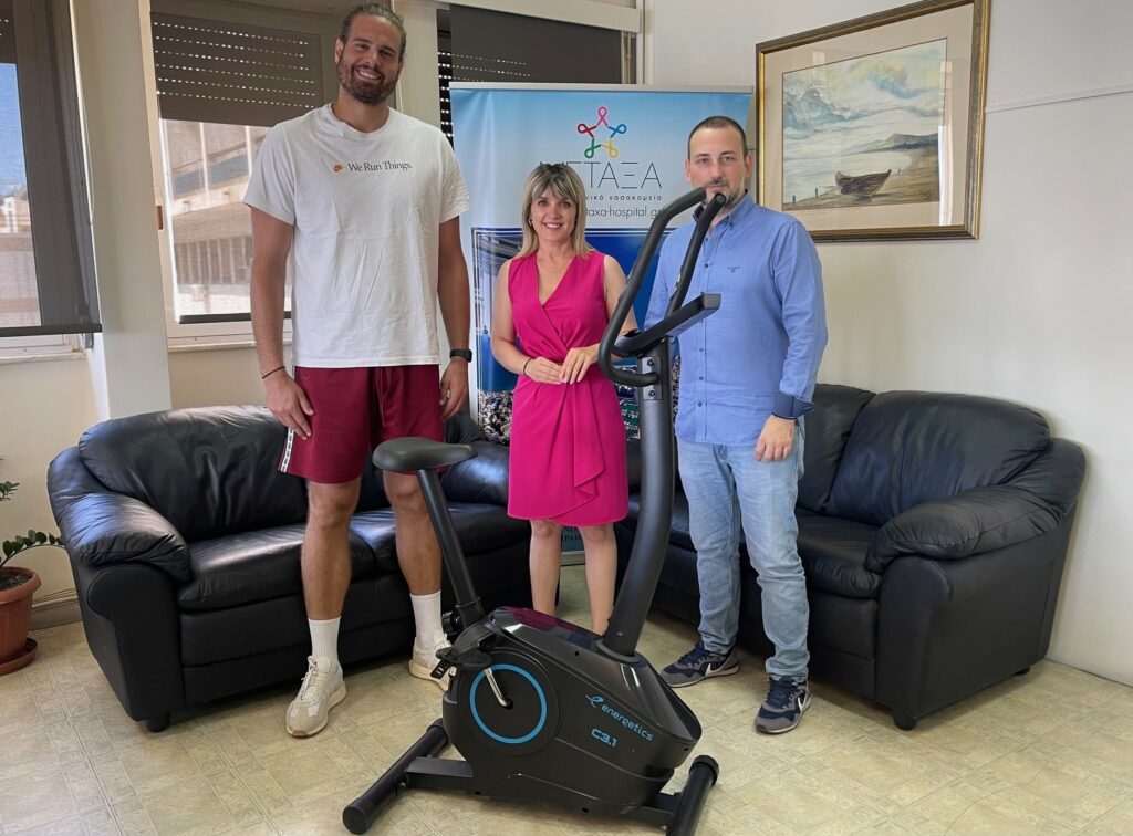 Η δωρεά αφορούσε σε ένα στατικό ποδήλατο γυμναστικής προς την Αιματολογική Κλινική του Νοσοκομείου Μεταξά και πιο συγκεκριμένα, προορίζεται για τους ασθενείς της Μονάδας Αιματολογικών Μεταμοσχεύσεων, ενώ πραγματοποιήθηκε στο πλαίσιο της κοινωνικής δράσης του WIN CANCER «Αθλητές… απέναντι στον καρκίνο».