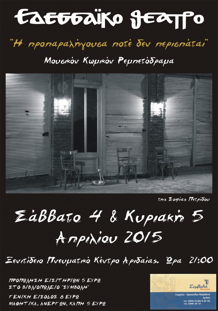 ΕΔΕΣΣΑΪΚΟ ΘΕΑΤΡΟ ΔΥΟ ΠΑΡΑΣΤΑΣΕΙΣ ΣΤΗΝ ΑΡΙΔΑΙΑ ΜΕ ΤΟ ΕΡΓΟ «Η προπαραλήγουσα ποτέ δεν περισπάται»