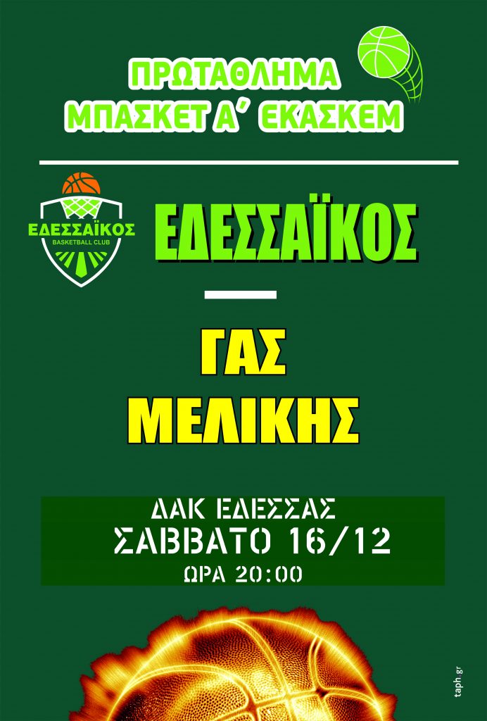 Εδεσσαϊκός B.C. – ΓΑΣ Μελίκης Σάββατο 16/12 στις 20:00 στο ΔΑΚ Έδεσσας