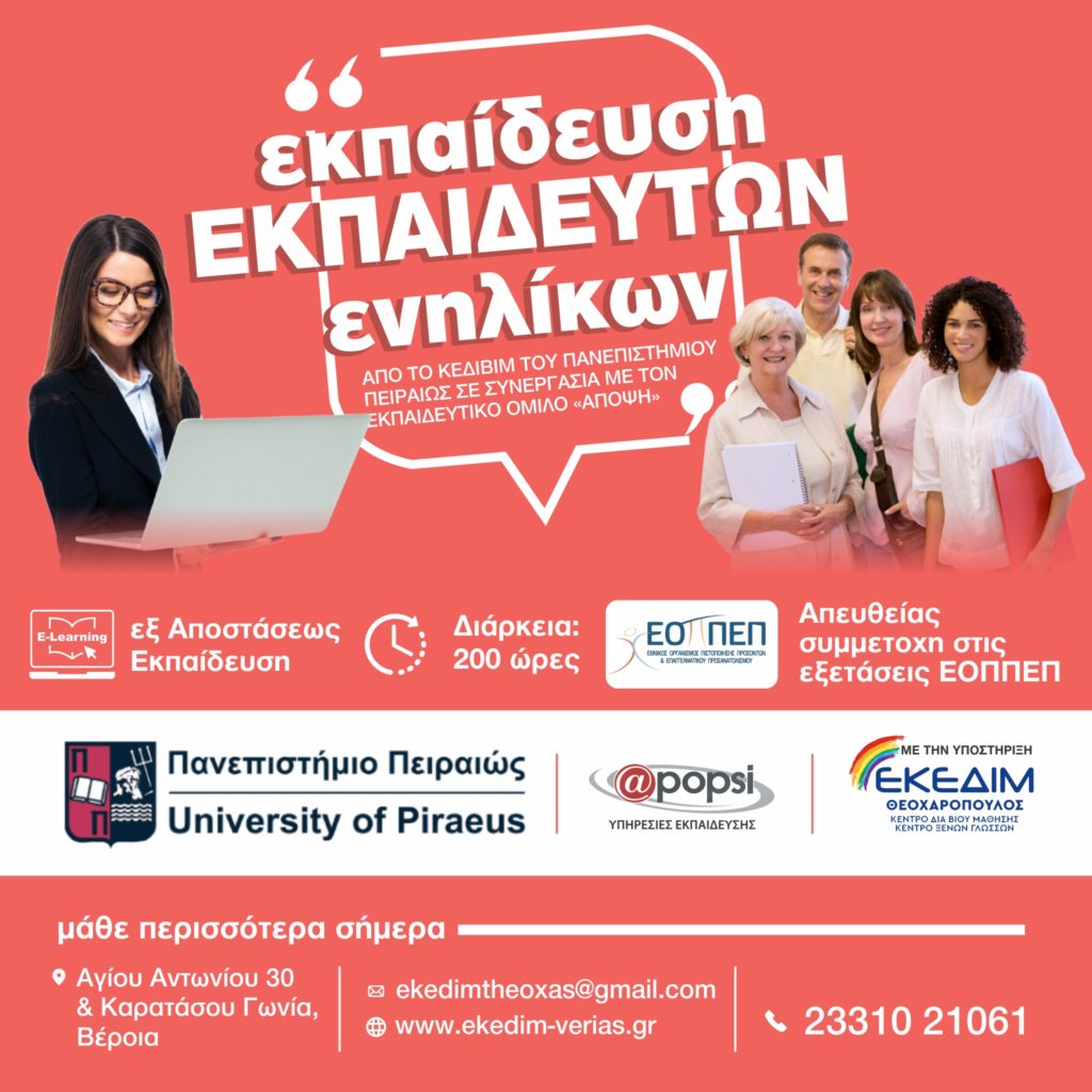ΕΚΠΑΙΔΕΥΣΗ ΕΚΠΑΙΔΕΥΤΩΝ ΕΝΗΛΙΚΩΝ ΑΠΟ ΤΟ ΚΕΔΙΒΙΜ ΤΟΥ ΠΑΝΕΠΙΣΤΗΜΙΟΥ ΠΕΙΡΑΙΑ