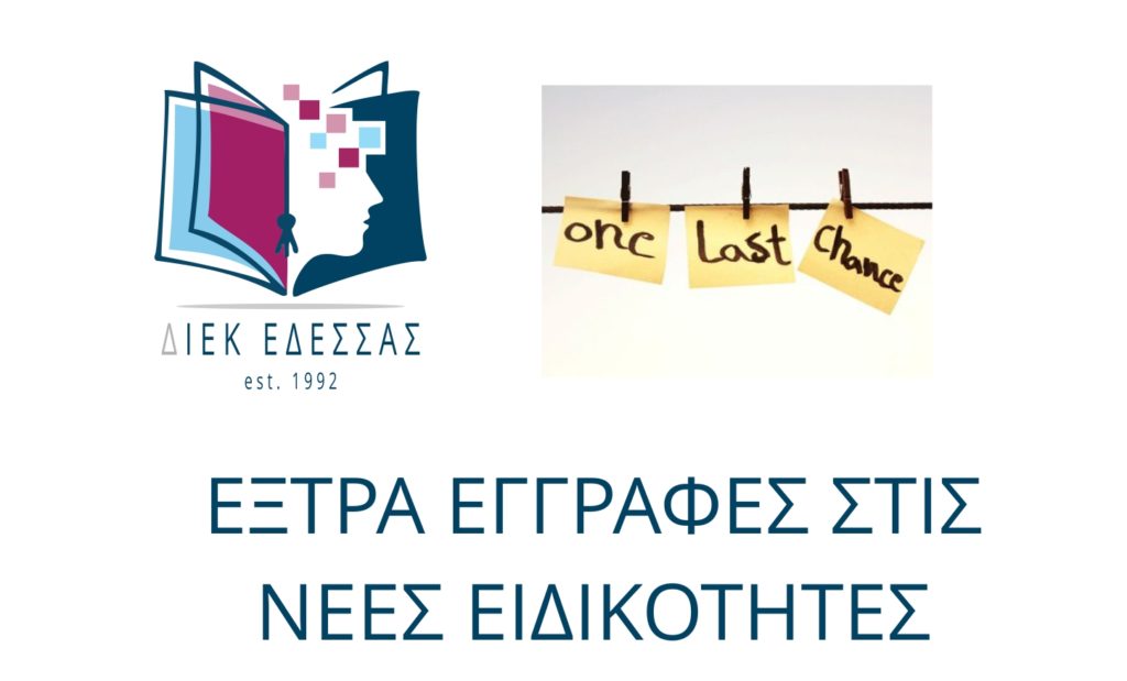 ΤΕΛΕΥΤΑΙΑ ΕΥΚΑΙΡΙΑ ΕΓΓΡΑΦΗΣ ΣΤΙΣ ΝΕΕΣ ΕΙΔΙΚΟΤΗΤΕΣ ΤΟΥ 2020-21