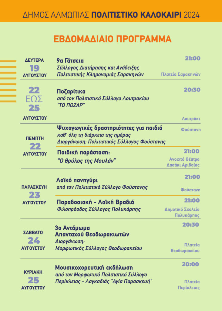 ΕΠΙΚΑΙΡΟΠΟΙΗΣΗ ΕΒΔΟΜΑΔΙΑΙΟΥ ΠΡΟΓΡΑΜΜΑΤΟΣ ΕΚΔΗΛΩΣΕΩΝ ΣΤΟΝ ΔΗΜΟ ΑΛΜΩΠΙΑΣ