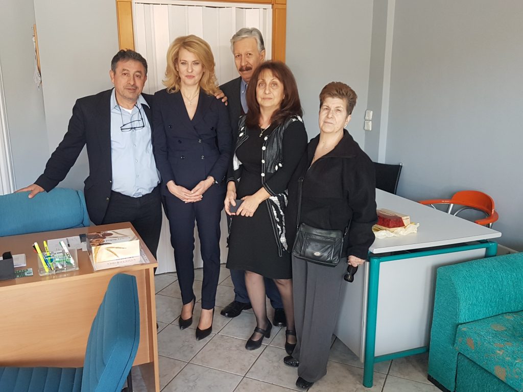 Την ίδια ημέρα η κ. Τζάκρη επισκέφτηκε επίσης τον Σύλλογο Παραπληγικών και Κινητικά Αναπήρων Ν. Πέλλας στα νέα γραφεία και συνομίλησε με τον πρόεδρο του συλλόγου κ. Λάζαρο Σιδερά και μέλη του Συλλόγου, από τους οποίους ενημερώθηκε για την δράση του συλλόγου σε ότι αφορά την παροχή αναπηρικών αμαξιδίων σε κινητικά αναπήρους σε όλη τη χώρα από τη συγκέντρωση πλαστικών καπακίων και την παροχή υποστηρικτικών υπηρεσιών στα μέλη τους για την επίλυση γραφειοκρατικών θεμάτων.