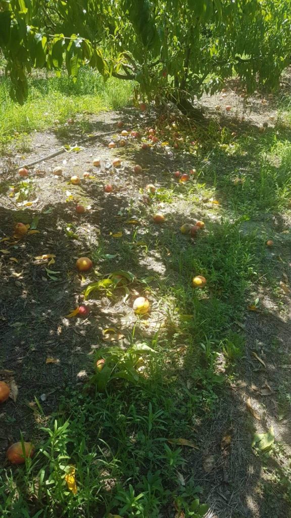 Να επισημάνω ακόμη ότι την Τετάρτη 5/8 οπότε και εκδηλώθηκαν τα ακραία καιρικά φαινόμενα – συνέπεια της κλιματικής αλλαγής – η θεομηνία ξεκίνησε με ανεμοθύελλα, χαλάζι και βροχή με άμεση συνέπεια να σπάσουν κλαδιά και να υποστούν ζημιές ακόμη και αγροτικές εγκαταστάσεις. Συνεχίστηκε και κορυφώθηκε το Σάββατο 8/8 αποτελειώνοντας ό,τι είχε απομείνει από την παραγωγή.