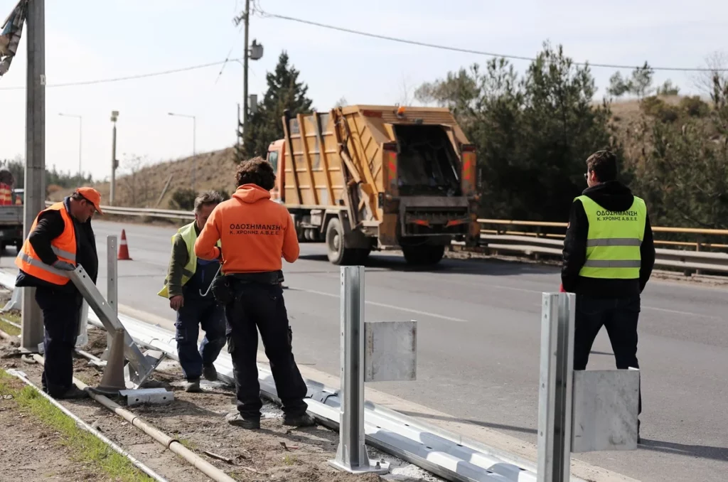 Εργασίες τοποθέτησης στηθαίων ασφαλείας στην Εθνική Οδό 2 Θεσσαλονίκης-Έδεσσας από την Περιφέρεια Κεντρικής Μακεδονίας