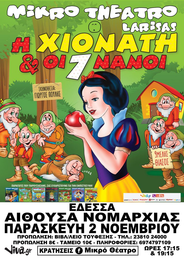 Πιστό στο ραντεβού του το Μικρό Θέατρο Λάρισας έπειτα από την τεράστια επιτυχία που σημείωσε το καλοκαίρι με τον Λυκο & τα 7 Κατσικάκια σε όλη την Ελλάδα, συνεχίζει την παράδοση που δημιούργησε από το 2009 με τις ποιοτικές παιδικές παραγωγές του ,και παρουσιάζει για 9ο συνεχές χειμώνα στην πόλη μας & ΣΕ ΠΡΑΓΜΑΤΙΚΗ ΘΕΑΤΡΙΚΗ ΑΠΟΔΟΣΗ το φανταστικό παραμύθι που όλα τα παιδιά γνωρίζουν.