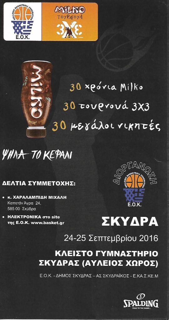 Για 5η χρονιά ο Δήμος Σκύδρας, η Ελληνική Ομοσπονδία Καλαθοσφαίρισης ο Α.Σ. Σκυδραϊκός και η Ε.ΚΑ.Σ.ΚΕ.Μ. συνδιοργανώνουν το τουρνουά μπάσκετ 3 με 3.