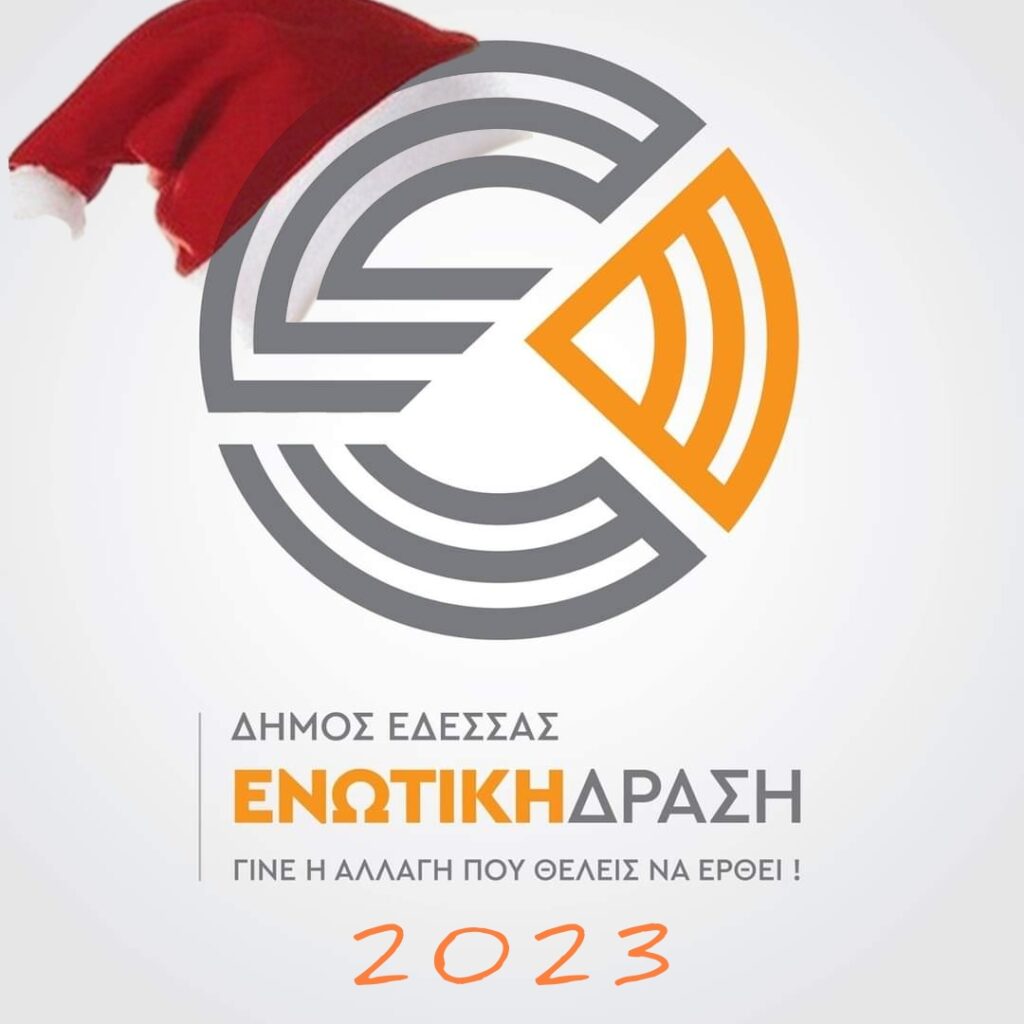Η Ενωτική Δράση και ο επικεφαλής της Αντώνης Ρυσάφης σας εύχονται μια ευτυχισμένη νέα χρονιά. Το 2023 θα είναι το έτος της Ελπίδας για τον Δήμο Έδεσσας, ο οποίος θα προχωρήσει δυναμικά μπροστά με αλλαγή νοοτροπίας, με όραμα και δημιουργία, για να αποκτήσουν όλοι οι συμπολίτες μας την Ενωτική δημοτική αρχή που τους αξίζει!