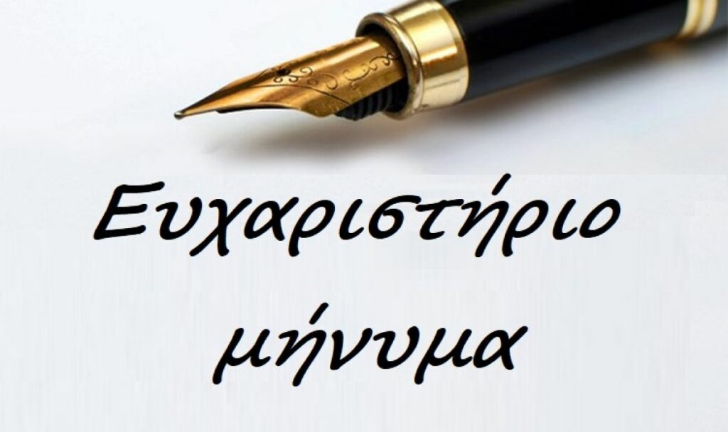 ΕΥΧΑΡΙΣΤΗΡΙΟ της Διοίκησης του Γενικού Νοσοκομείου της Οργανικής Μονάδας Έδεσσας